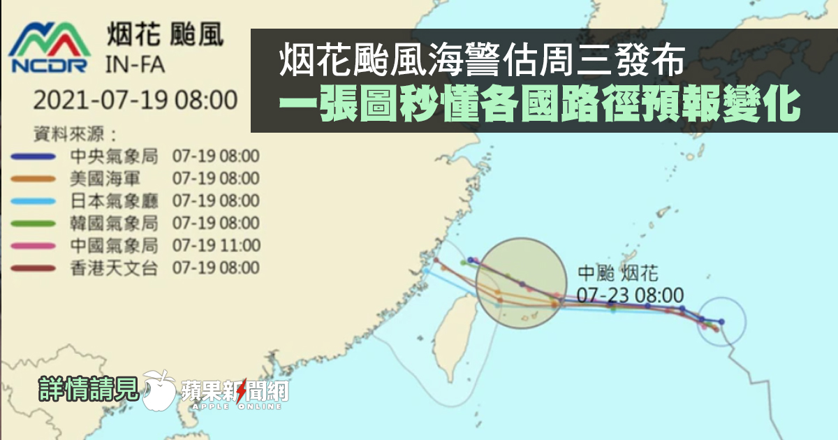 烟花颱風海警估周三發布一張圖秒懂各國路徑預報變化 蘋果新聞網 蘋果日報