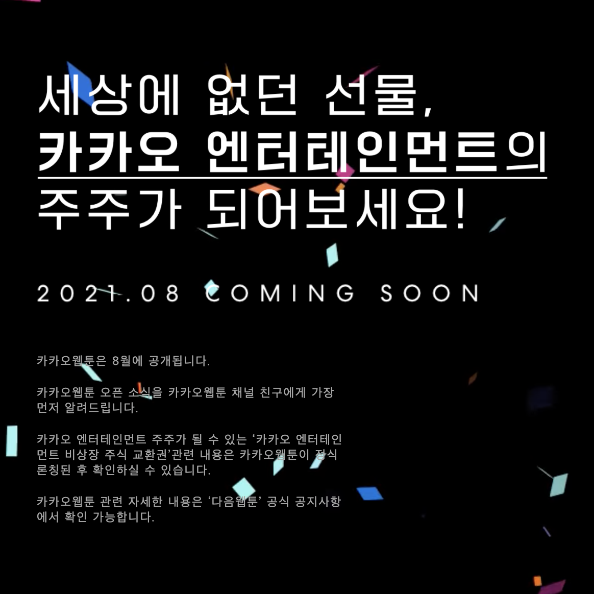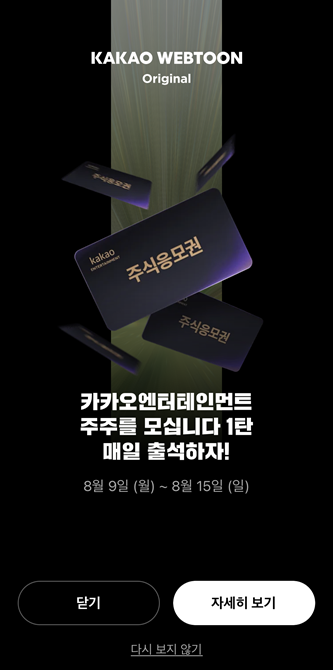 카카오엔터테인먼트 주식 응모권 이벤트 소식 웹툰보고 주주 되자